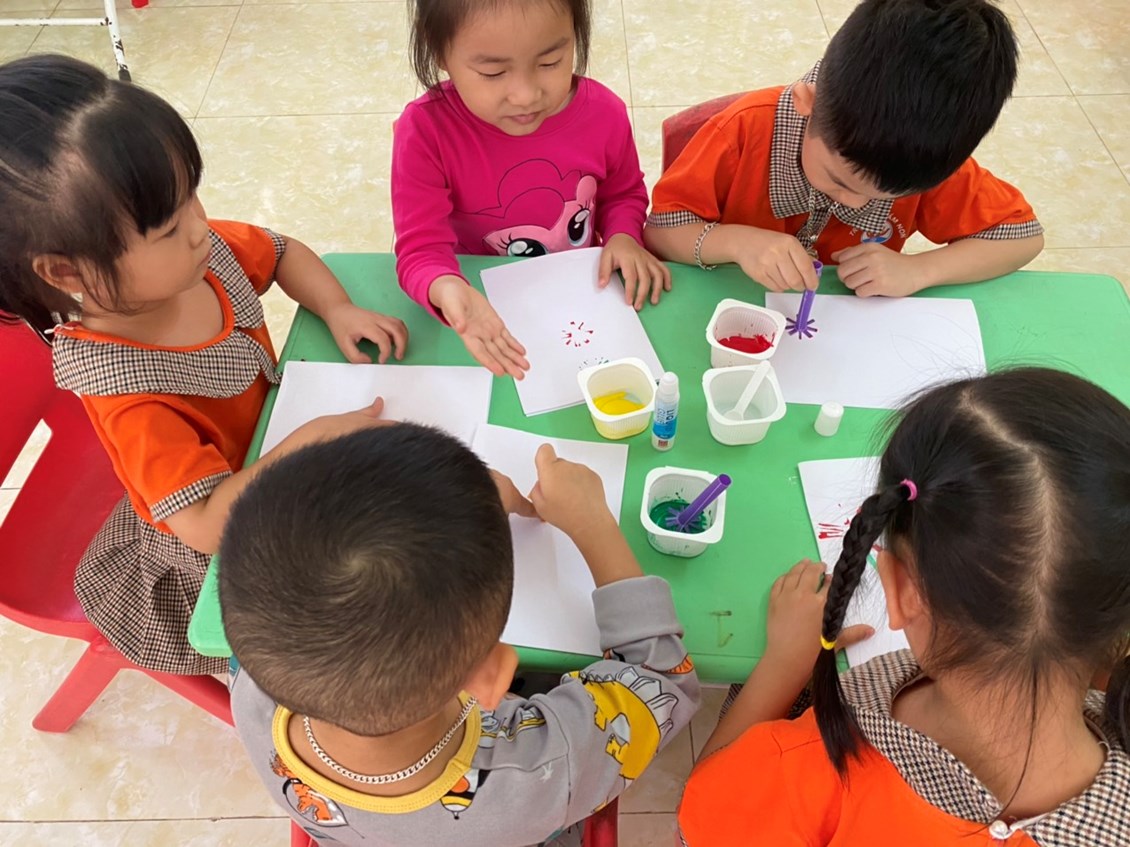 Hoạt động tạo hình "Làm thiệp tặng bà, mẹ" đã bắt đầu một cách đong đầy yêu thương. Các bé đã rất hào hứng và khéo léo in hoa bằng vân tay, dán hoa, dán lá,…. lên tấm thiệp để tặng bà, tặng mẹ, tặng cô. Cùng với sự hướng dẫn, hỗ trợ từ các cô giáo, các bé đã hoàn thành những tác phẩm rất đáng yêu của mình. Đây chắc chắn sẽ là một món quà vô cùng ý nghĩa dành tặng cho bà, mẹ, cô nhân ngày Phụ nữ Việt Nam 20/10 này.