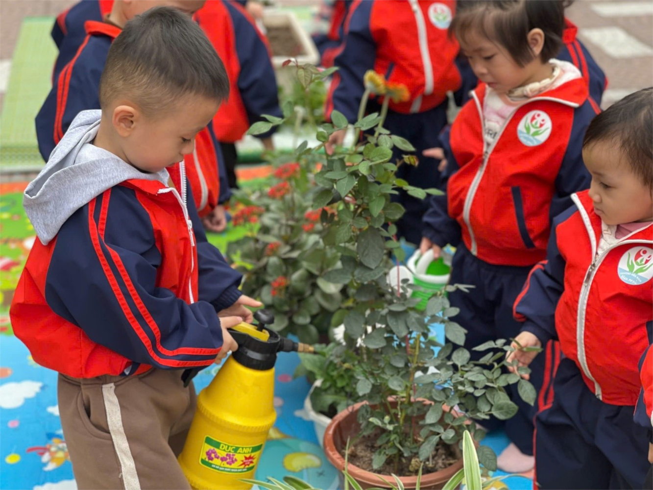 Khi những tia nắng ấm áp của mùa xuân lan tỏa khắp sân trường. Các cô giáo và các bé háo hức chuẩn bị các dụng cụ để trồng cây, từ những chậu nhỏ xinh xắn đến các cây giống được lựa chọn kỹ lưỡng. Mặc dù còn nhỏ tuổi, nhưng các bé lớp nhà trẻ và 3 tuổi đều rất phấn khởi khi được tham gia vào hoạt động này.