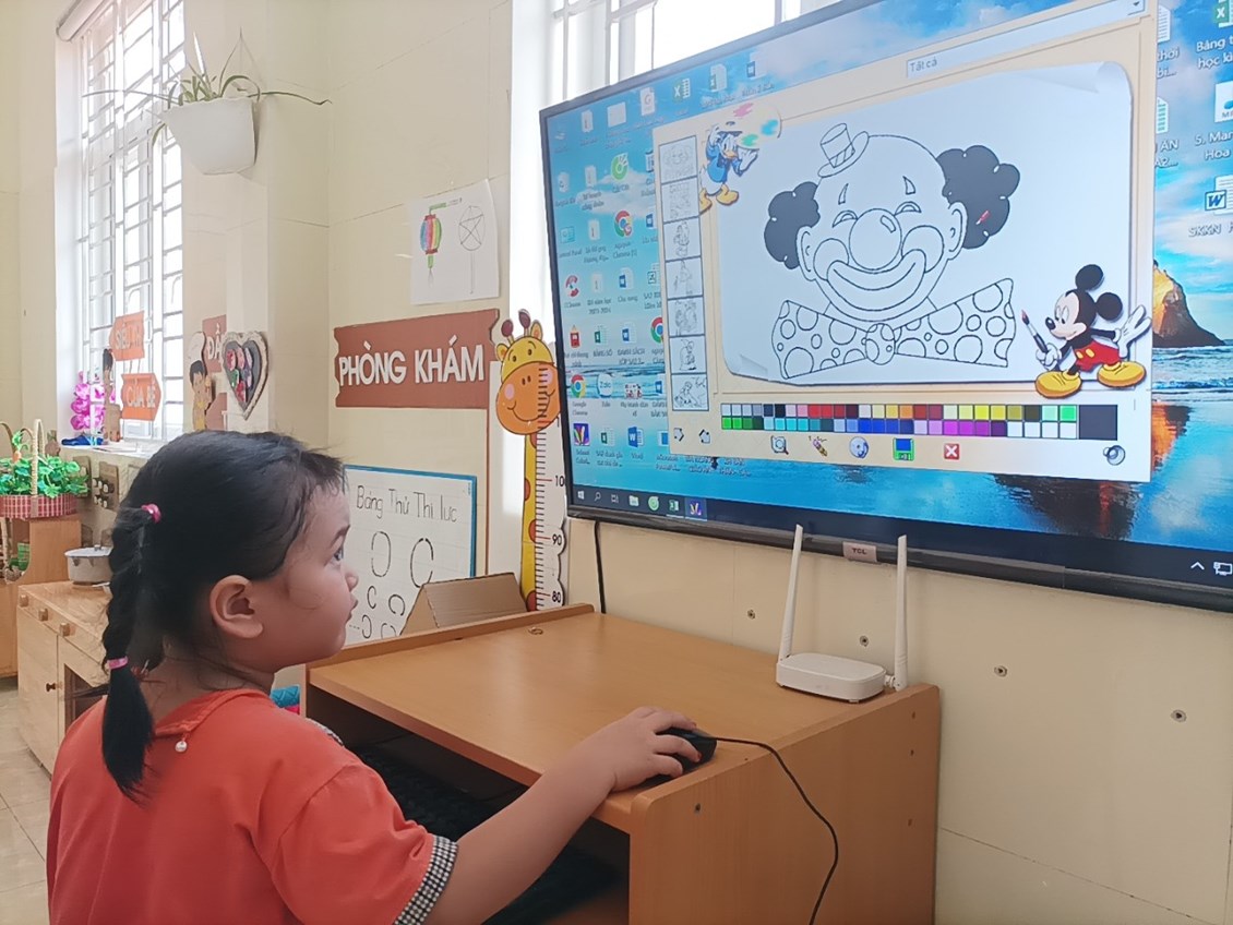 Năm học 2023-2024 với các “đầu việc” như ứng dụng CNTT trong dạy học và quản lý, xây dựng hệ thống học liệu điện tử, số hóa dữ liệu giáo dục, xây dựng thư mục dữ liệu các hoạt động giáo dục chăm sóc trẻ, tuyển sinh đầu cấp, phối hợp với phụ huynh chăm sóc, giáo dục trẻ…. Đến nay, nhà trường đã hoàn thiện cập nhật hồ sơ chính xác cho toàn thể cán bộ, giáo viên, nhân viên và phụ huynh, học sinh trên cơ sở dữ liệu ngành. 100% trẻ trong nhà trường được quản lý bằng hồ sơ số với mã định danh duy nhất.