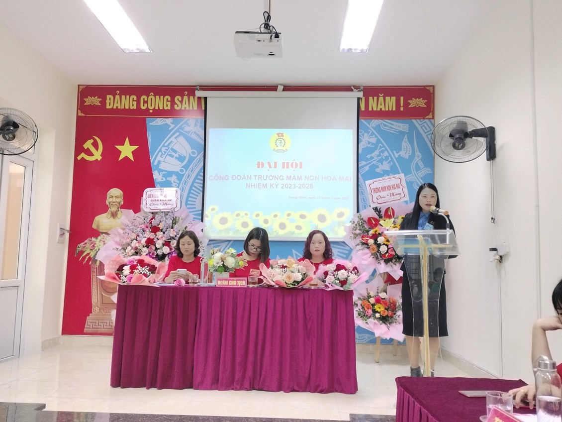 Trong không khí phấn khởi thi đua lập thành tích chào mừng năm mới 2023. Sáng ngày 15/22/2023, Công đoàn cơ sở Trường Mầm non Hoa Mai long trọng tổ chức đại hội Công đoàn nhiệm kỳ 2023 - 2028.