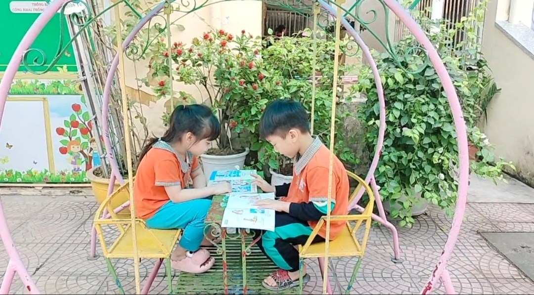 Cùng với đó, nhà trường phân công các lớp sáng tạo các góc đọc xanh, giờ đọc xanh hoà mình vào không gian thiên nhiên để thư thái cùng trang sách.