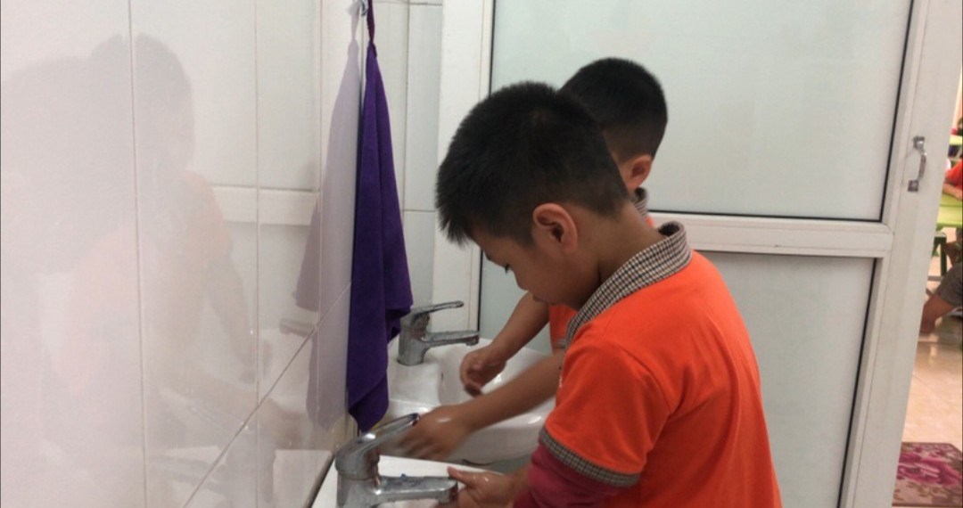 - Ở trường nhà trường cho trẻ rửa tay sạch sẽ với xà phòng trước khi nấu ăn và ăn uống, trước khi cho trẻ ăn, sau khi dùng nhà vệ sinh vàkhi tay bẩn. Ở nhà các bậc phụ huynh cũng luôn nhắc nhở con thực hiện để vệ sinh đôi bàn tay.