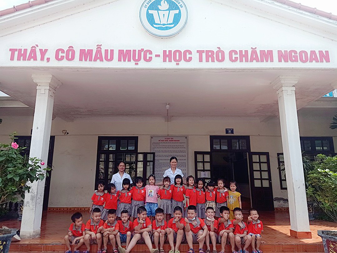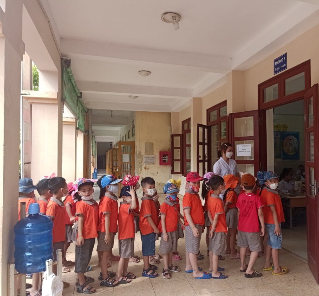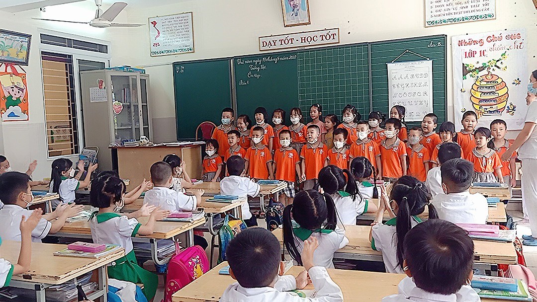 Các bé lớp 5 tuổi trường mầm non Hoa Mai đi tham quan lớp 1 tại trường tiểu học Trần Quốc Toản