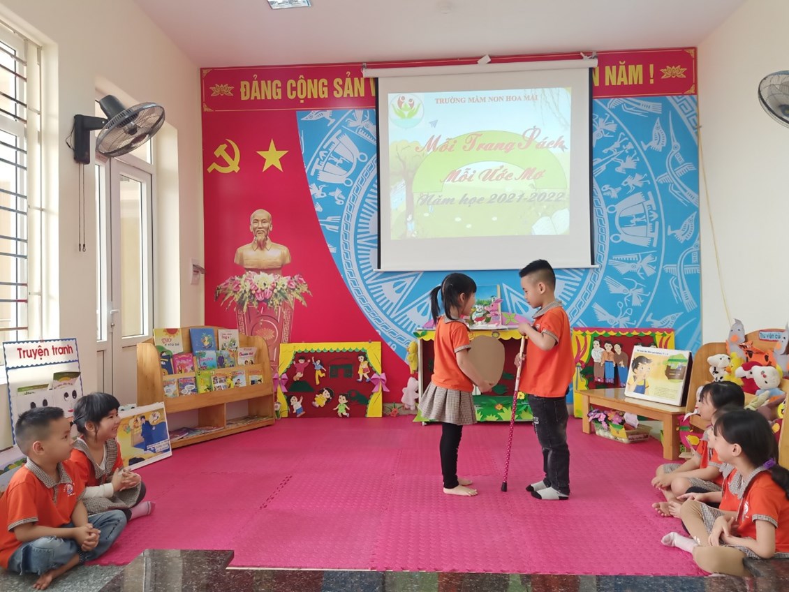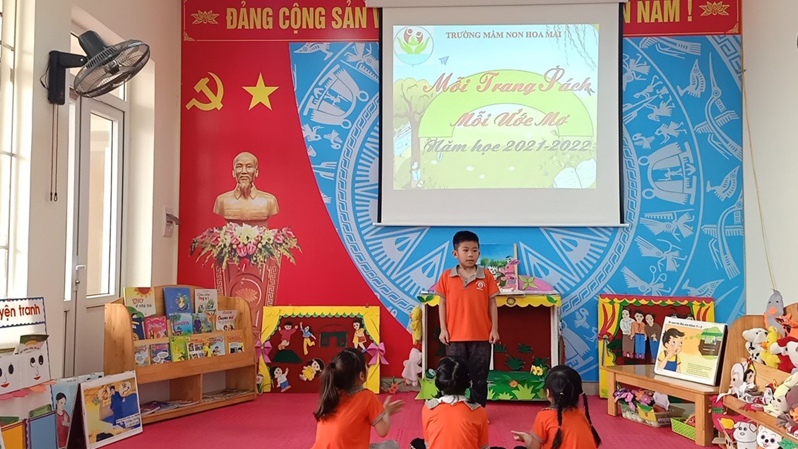 Hưởng ứng Ngày sách Việt Nam năm 2022, nhằm nâng cao nhận thức về văn hóa đọc, khơi dậy lòng yêu đọc sách, hình thành thói quen đọc sách, ý thức tự học, học tập suốt đời của người dân đặc biệt là học sinh, góp phần xây dựng xã hội học tập. Trường Mầm non Hoa Mai đã tổ chức ngày hội "Mỗi trang sách mỗi ước mơ" với nhiều hoạt động đọc sách thiết thực phong phú như: Tổ chức theo các nhóm đọc, các cô hướng dẫn trẻ, cùng trẻ đọc và xem những quyển tranh truyện phù hợp với lứa tuổi, giới thiệu sách theo chủ điểm, chủ đề kể chuyện theo tranh....Cô và trò đã tận dụng mọi thời gian trống trong ngày để đến với sách, sáng tạo trong việc tạo dựng các góc thân thiện "Thư viện thân thiện" phù hợp để sách báo trở thành những người bạn thân thiện, là sản phẩm tinh thân không thể thiếu của mỗi thầy cô và học sinh trong nhà trường.