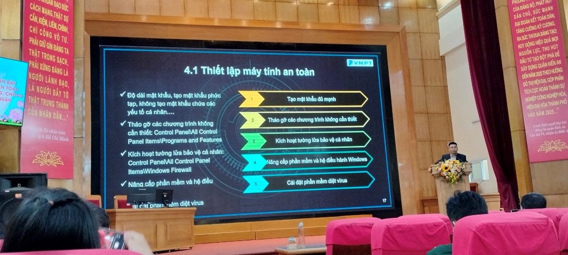 Quán triệt tinh thần và nội dung các vấn đề về đảm bảo an ninh mạng trong tình hình mới và vận dụng vào công tác của nhà trường, BGH đã mở các lớp tuyên truyền, tập huấn ngắn hạn cho 100% CBGVNV trong nhà trường để triển khai công tác chuyển đổi số một cách hiệu quả an toàn.