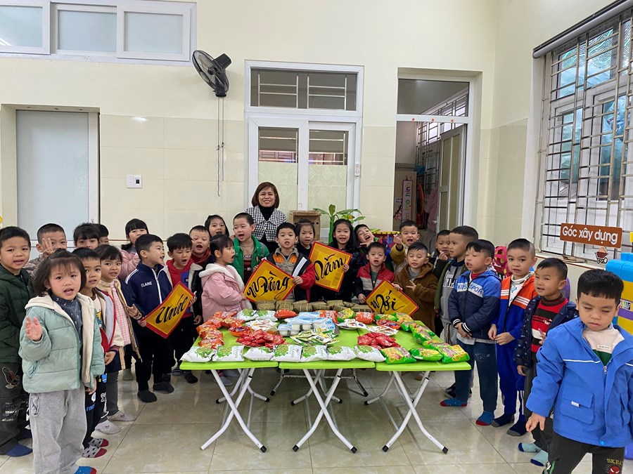 Một số hình ảnh liên hoan trước ngày nghỉ tết của cô và bé trường Mầm non Hoa Mai