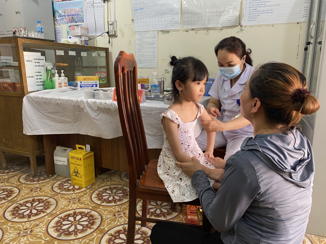 Một số hình ảnh trong buổi tiêm phòng covid-19 cho trẻ 5 tuổi của các bé trường Mầm non Hoa Mai tại trạm y tế phường Tràng Minh